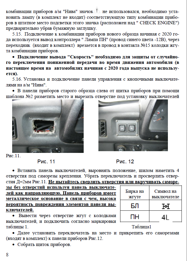 Замечание по установке и эксплуатации "Lada 4x4" с 2020 г.в. (Niva Legend с 2021):