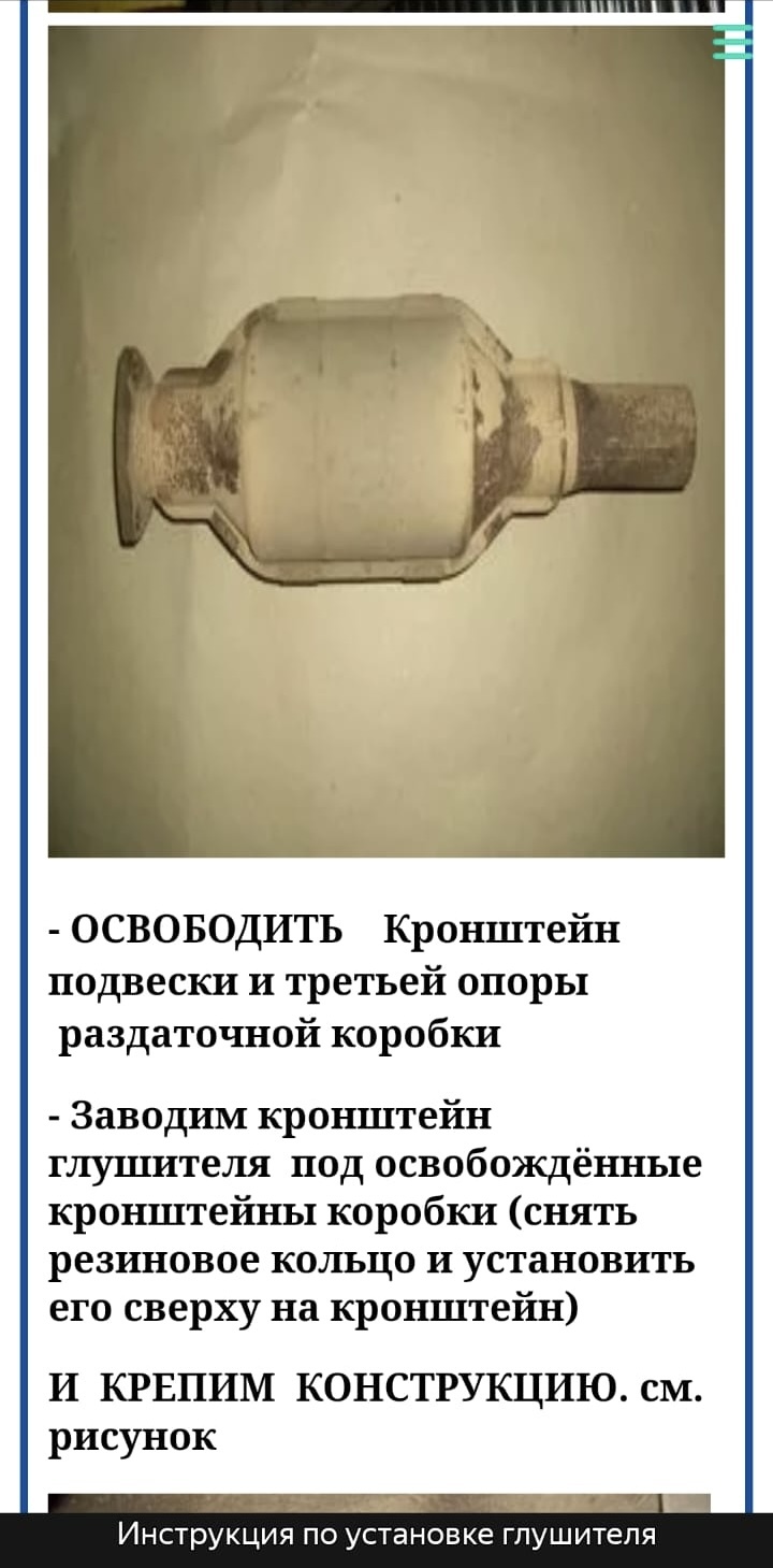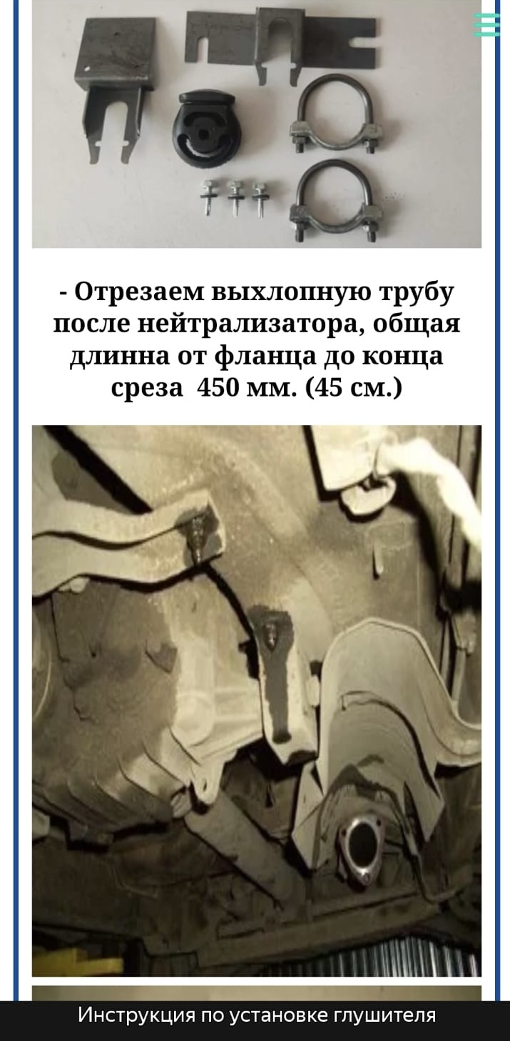 Если на машине установлен катализатор, то необходимо по месту отрезать часть глушителя из комплекта поставки и соединить с нейтрализатором.