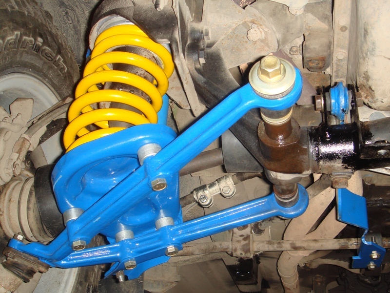 Высота дорожного просвета под передним мостом увеличивается на 50 мм за счет установки модифицированной нижней чашки пружины. Пружины и амортизаторы остаются штатные. Проставки под шаровые устанавливаются для сохранения величины хода передней подвески. Усиленная задняя подвеска. Увеличенный дорожный просвет позволяет установить колеса с большим диаметром.
