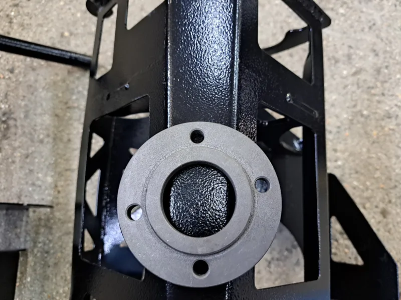 Подготовка агрегатов. С КПП снимаем опору с кронштейном, для этого откручиваем две гайки на корпусе КПП. Откручиваем болты крепления эластичной муфты к фланцу КПП и снимаем промвал. Максимально очищаем агрегаты от грязи. Устанавливаем агрегаты на стол (верстак). Делаем проверку правильности геометрии фланца КПП. Для чего откручиваем три крепления эластичной муфты к фланцу КПП (для удобства стянуть эластичную муфту хомутом из набора). Проворачивая смотрим на биение трех креплений фланца. (для точности проверки подставить какой либо предмет в непосредственной близости к фланцу и контролировать зазор при вращении). Если присутствует биение, значит нарушена геометрия фланца и нужно его заменить либо снять и обработать на станке. На ось КПП напрессовываем стальную втулку из набора и фиксируем стопорным кольцом. На шрусе промвала меняем шпильки на удлинённые, для этого накручиваем две гайки, и затянув их между собой выкручиваем шпильку.