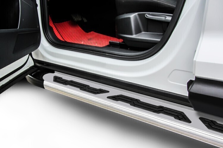 Уникальный крепеж позволяет сохранить клиренс автомобиля неизменным в 100% случаев; проектирование подножек с учетом конструктивных особенностей автомобиля позволяет установить алюминиевые пороги без сверления кузова.