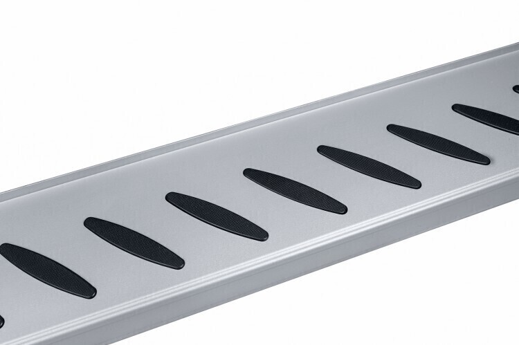 Корпус порогов изготовлен из высококачественного анодированного алюминия, торцевые элементы выполнены из температуроустойчивого эластичного пластика.