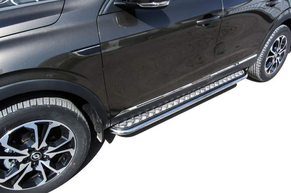 У удобного и стильного - установлены пороги из нержавейки диаметром 42 мм с алюминиевым листом: