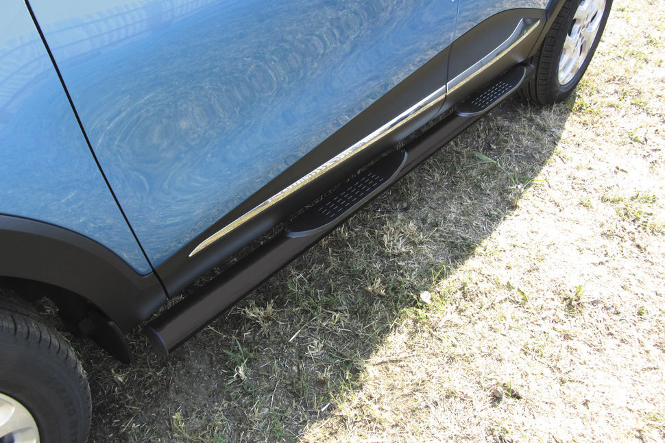 Пороги стальные Renault Kaptur 4WD (2012-2019) d76 с проступями (серебристые)