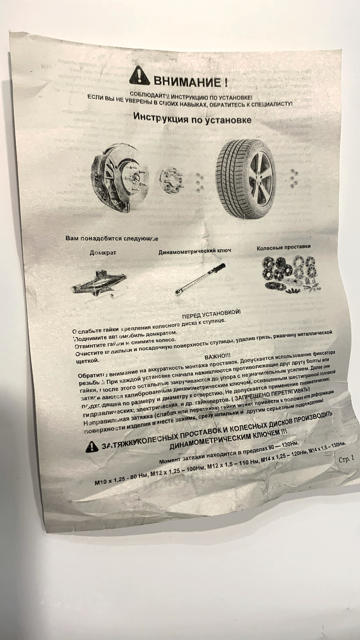 Несоблюдение выше приведенных инструкций, может привести к ущербу вашего имущества и серьезным травмам. Колесные проставки не являются запасными частями транспортных средств, а так же не сертифицированы заводами изготовителями транспортных средств. Пользователь несет полную ответственность за изменения, самостоятельно внесенные в конструкцию транспортного средства!
