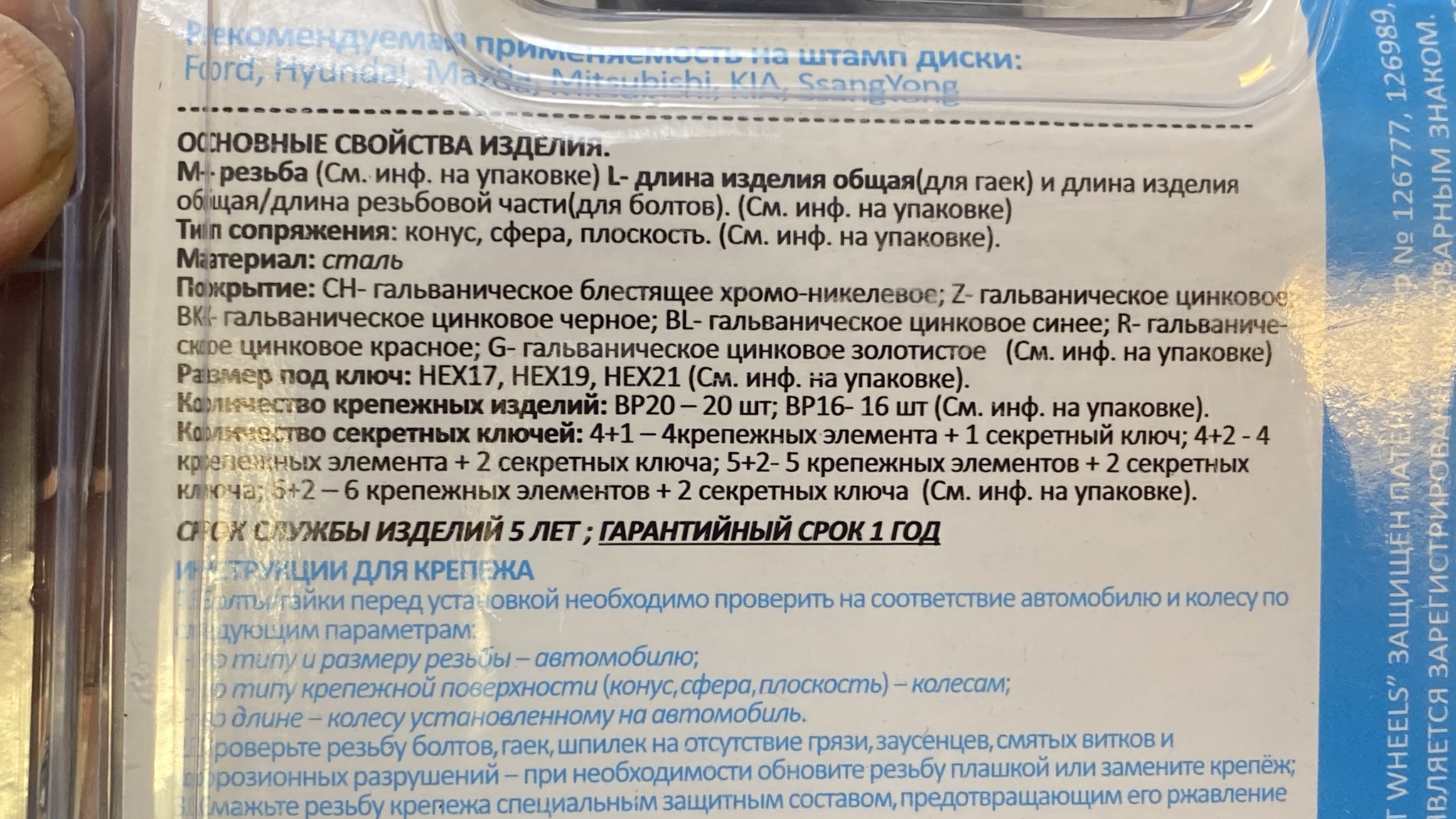 Гайки черного матового цвета, они идеально подчеркнут стиль вашего автомобиля и обеспечат защиту от несанкционированного доступа к колесам вашего авто.