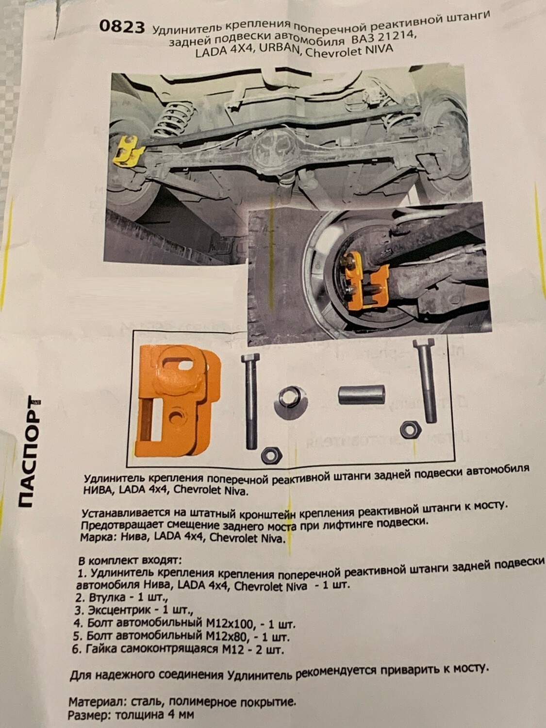 Используется для правильной регулировки положения заднего моста при лифте подвески от 30 мм до 75 мм со штанга задней подвески (панара) - стандартного (без разрезная) исполнения