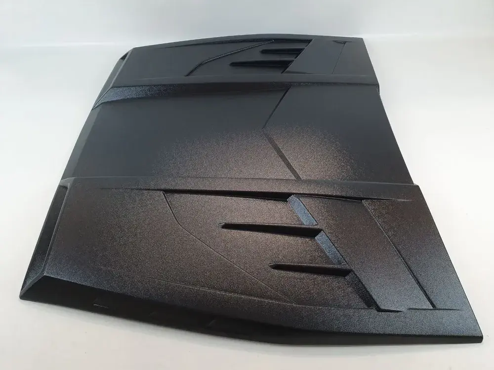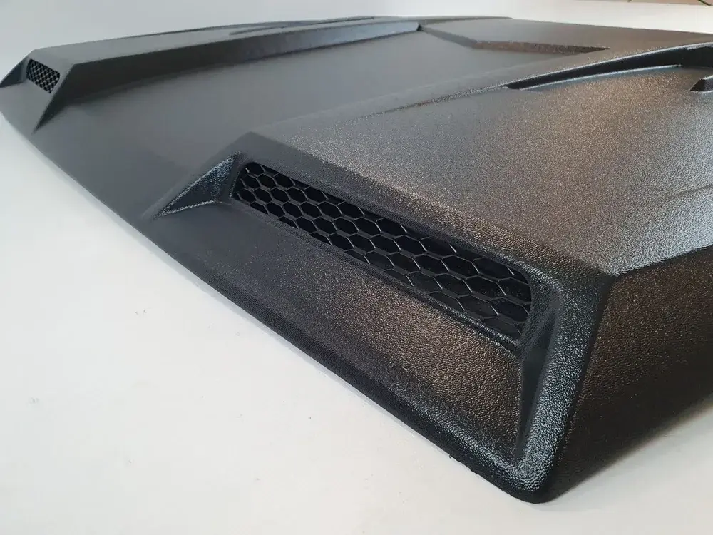 Накладка на капот - шедевр инженерной мысли. Дизайнеры решились на смелый и оправданный шаг: соединили армейский дизайн с тремя аэро эффектами: