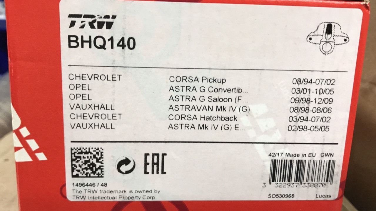 Тормозные колодки стандартные для автомобиля Opel: Miles E110057 (Колодки тормозные (смесь Semi-Metallic) задние (OPEL ASTRA G, H) (без датчика + болты) (TRW GDB1515))