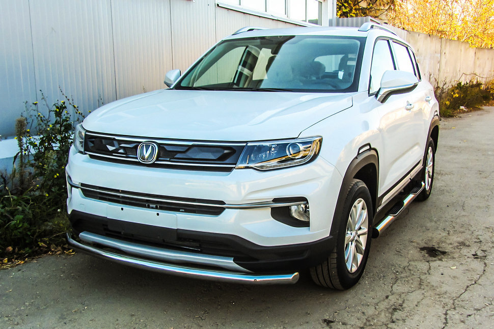 Защита переднего бампера Changan CS35Plus (2018-2023) состоит из трубы, изготовленной из нержавеющей стали диаметром 57 мм. Надежное крепление к кузову автомобиля. Установка без сверления кузова. Цвет окраски: черный. Изготовление по предварительному заказу. Гарантия качества!