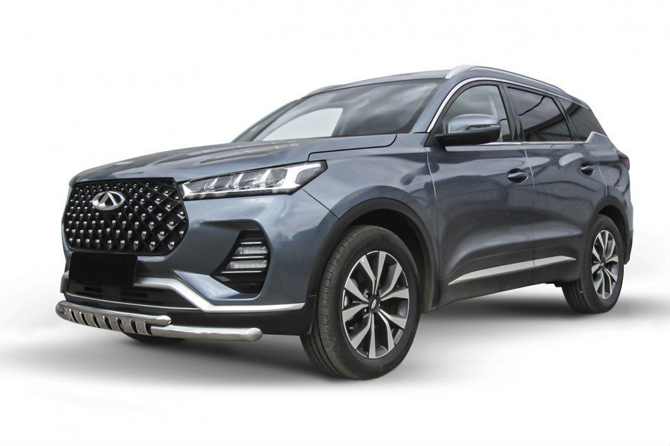 Защита переднего бампера Chery Tiggo 7 Pro (2020-2023) состоит из 2-х труб, изготовленных из нержавеющей стали диаметрами 57 и 42 мм.с декоративными элементами. Надежное крепление к кузову автомобиля. Установка без сверления кузова. Изготовление по предварительному заказу. Гарантия качества!