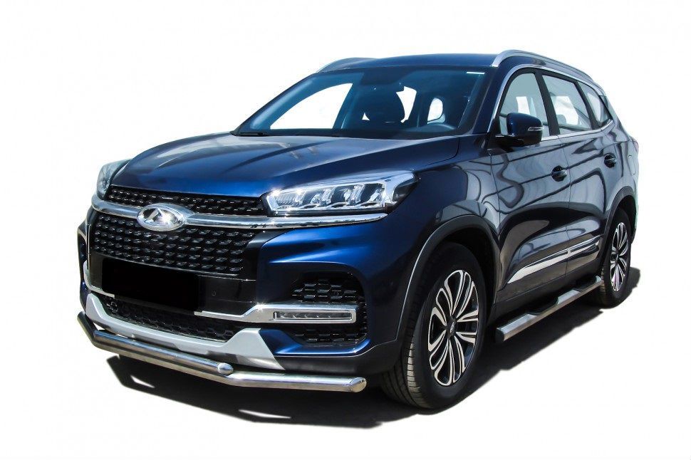 Защита переднего бампера Chery Tiggo 8 (2018-2023) состоит из 2-х труб, изготовленных из нержавеющей стали диаметрами 57 и 42 мм. Надежное крепление к кузову автомобиля. Установка без сверления кузова. Изготовление по предварительному заказу. Гарантия качества!