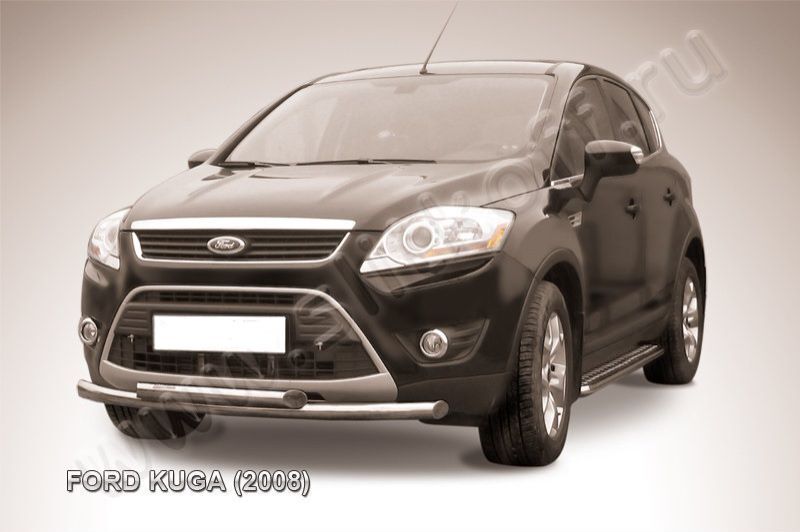 Защита переднего бампера Ford Kuga (2008-2013) состоит из 2-х труб, изготовленных из нержавеющей стали диаметрами 57 и 57 мм. Надежное крепление к кузову автомобиля. Установка без сверления кузова. Изготовление по предварительному заказу. Гарантия качества!