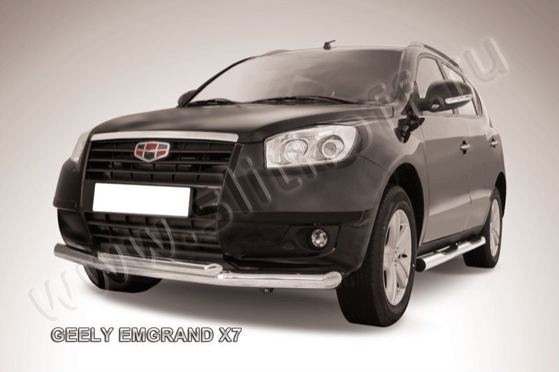 Защита переднего бампера Geely Emgrand X7 (2011-2016) состоит из 2-х труб, изготовленных из нержавеющей стали диаметрами 76 и 57 мм.Надежное крепление к кузову автомобиля. Установка без сверления кузова. Изготовление по предварительному заказу. Гарантия качества!