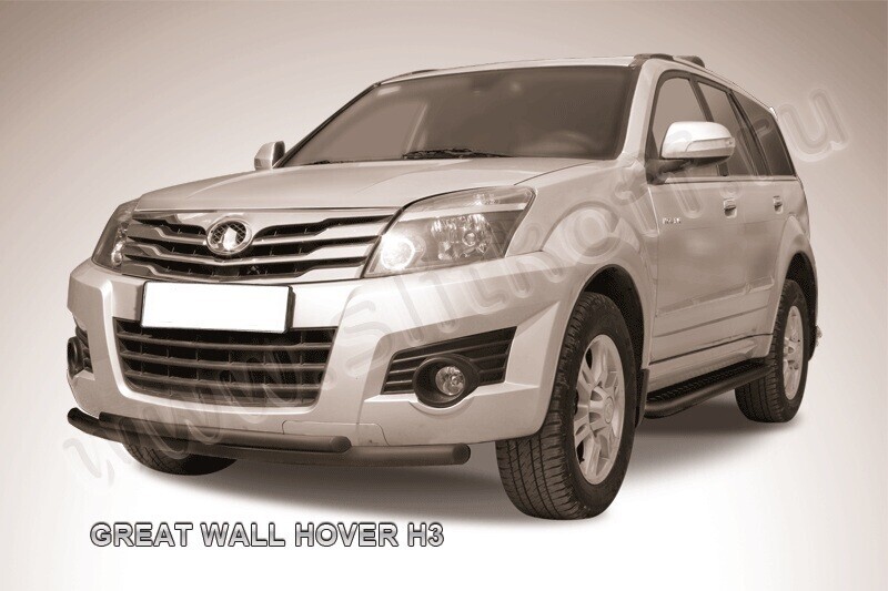 Защита переднего бампера Great Wall Hover H3 (2010-2015) состоит из 2-х изогнутых труб, изготовленных из нержавеющей стали диаметрами 57 и 42 мм.Надежное крепление к кузову автомобиля. Установка без сверления кузова. Цвет окраски: черный. Изготовление по предварительному заказу. Гарантия качества!