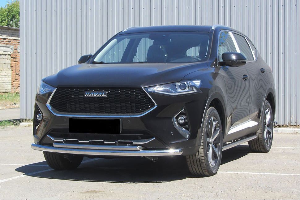 Защита переднего бампера Haval F7 F7x (2019-2023) состоит из 2-х труб, изготовленных из нержавеющей стали диаметрами 57 и 42 мм.Надежное крепление к кузову автомобиля. Установка без сверления кузова. Изготовление по предварительному заказу. Гарантия качества!