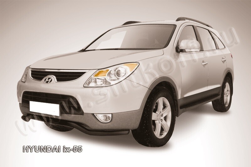 Защита переднего бампера Hyundai ix-55 (2008-2013) состоит из изогнутой трубы, изготовленной из нержавеющей стали диаметром 57 мм. Надежное крепление к кузову автомобиля. Установка без сверления кузова. Цвет окраски: черный. Изготовление по предварительному заказу. Гарантия качества!