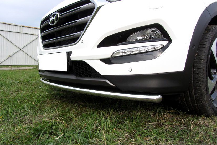 Защита переднего бампера Hyundai Tucson 4WD (2015-2018) состоит из трубы, изготовленной из нержавеющей стали диаметром 42 мм. Надежное крепление к кузову автомобиля. Установка без сверления кузова. Изготовление по предварительному заказу. Гарантия качества!