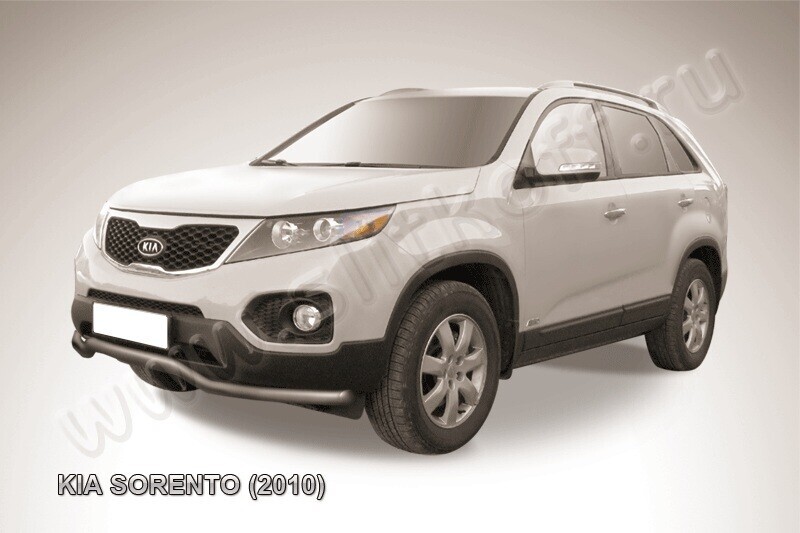 Защита переднего бампера Kia Sorento (2009-2012) состоит из изогнутой трубы, изготовленной из нержавеющей стали диаметром 57 мм. Надежное крепление к кузову автомобиля. Установка без сверления кузова. Цвет окраски: черный. Изготовление по предварительному заказу. Гарантия качества!