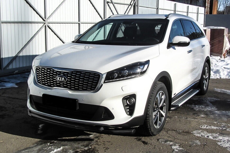 Защита переднего бампера Kia Sorento Prime (2017-2020) состоит из 2-х труб, изготовленных из нержавеющей стали диаметрами 57 и 42 мм. Надежное крепление к кузову автомобиля. Установка без сверления кузова. Цвет окраски: черный. Изготовление по предварительному заказу. Гарантия качества!