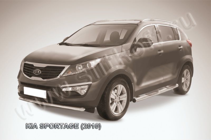 Защита переднего бампера Kia Sportage (2010-2016) состоит из трубы, изготовленной из нержавеющей стали диаметром 57 мм. Надежное крепление к кузову автомобиля. Установка без сверления кузова. Изготовление по предварительному заказу. Гарантия качества!