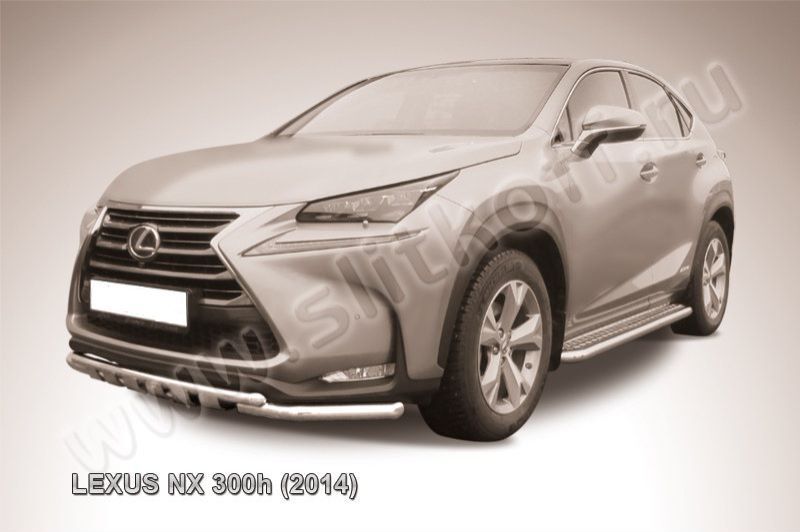 Защита переднего бампера Lexus NX-300h (2014-2021) состоит из трубы, изготовленной из нержавеющей стали диаметром 57 мм.с профильной защитой картера. Надежное крепление к кузову автомобиля. Установка без сверления кузова. Изготовление по предварительному заказу. Гарантия качества!