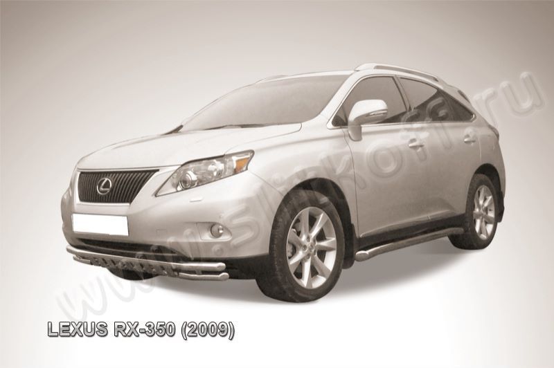 Защита переднего бампера Lexus RX-350 (2008-2012) состоит из 2-х труб, изготовленных из нержавеющей стали диаметрами 57 и 57 мм. с защитой картера. Надежное крепление к кузову автомобиля. Установка без сверления кузова. Изготовление по предварительному заказу. Гарантия качества!
