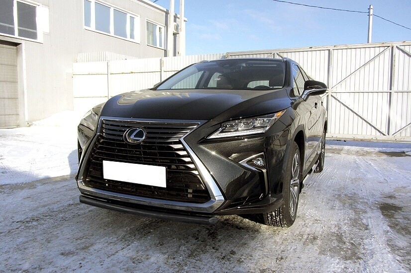 Защита переднего бампера Lexus RX-350 (2015-2019) состоит из трубы, изготовленной из нержавеющей стали диаметром 57 мм. Надежное крепление к кузову автомобиля. Установка без сверления кузова. Цвет окраски: черный. Изготовление по предварительному заказу. Гарантия качества!