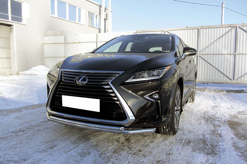 Защита переднего бампера Lexus RX-350 (2015-2019) состоит из 2-х труб, изготовленных из нержавеющей стали диаметрами 57 и 42 мм. Надежное крепление к кузову автомобиля. Установка без сверления кузова. Изготовление по предварительному заказу. Гарантия качества!