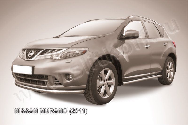 Защита переднего бампера Nissan Murano (2010-2015) состоит из трубы, изготовленной из нержавеющей стали диаметром 57 мм. Надежное крепление к кузову автомобиля. Установка без сверления кузова. Изготовление по предварительному заказу. Гарантия качества!