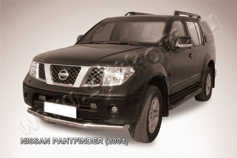 Защита переднего бампера Nissan Pathfinder R51 (2004-2010) состоит из трубы, изготовленной из нержавеющей стали диаметром 76 мм. Надежное крепление к кузову автомобиля. Установка без сверления кузова. Изготовление по предварительному заказу. Гарантия качества!
