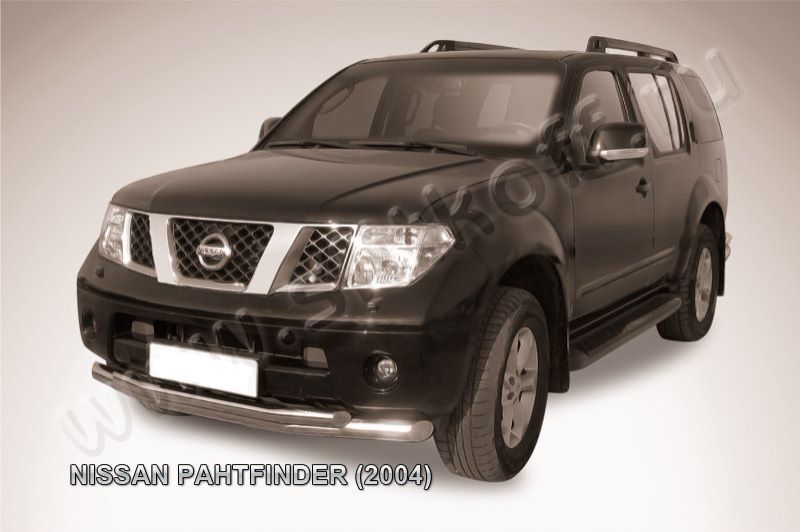 Защита переднего бампера Nissan Pathfinder R51 (2004-2010) состоит из 2-х труб, изготовленных из нержавеющей стали диаметрами 76 и 57 мм. Надежное крепление к кузову автомобиля. Установка без сверления кузова. Изготовление по предварительному заказу. Гарантия качества!