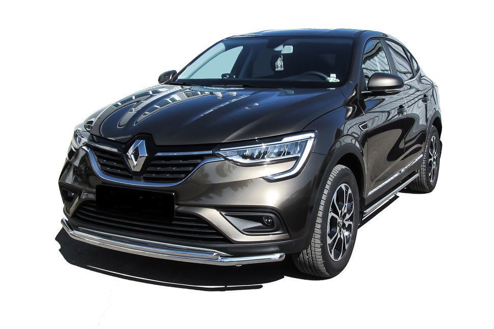 Защита переднего бампера Renault Arkana (2019-2023) состоит из 2-х труб, изготовленных из нержавеющей стали диаметрами 42 и 32 мм. Надежное крепление к кузову автомобиля. Установка без сверления кузова. Изготовление по предварительному заказу. Гарантия качества!