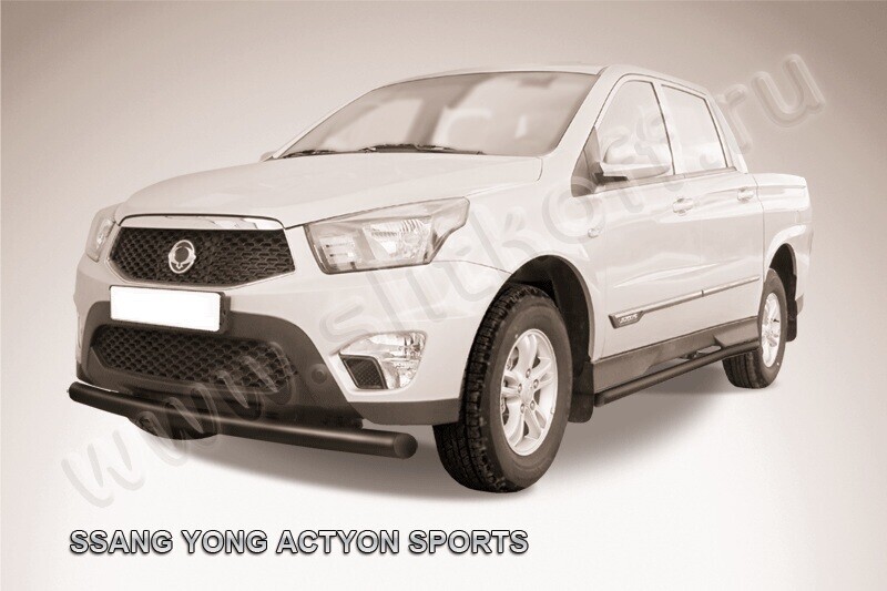 Защита переднего бампера SsangYong Actyon Sport (2012-2016) состоит из трубы, изготовленной из нержавеющей стали диаметром 76 мм. Надежное крепление к кузову автомобиля. Установка без сверления кузова. Цвет окраски: черный. Изготовление по предварительному заказу. Гарантия качества!