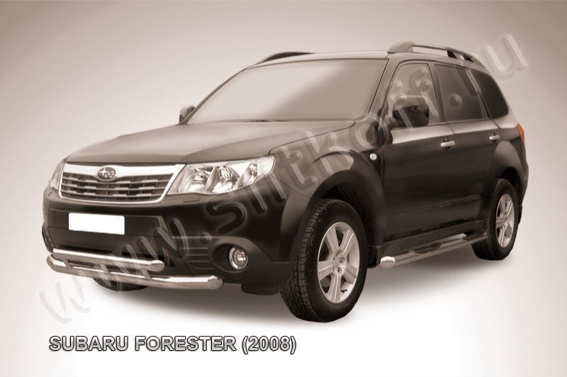 Защита переднего бампера Subaru Forester (2007-2013) состоит из 2-х труб, изготовленных из нержавеющей стали диаметрами 76 и 57 мм. Надежное крепление к кузову автомобиля. Установка без сверления кузова. Изготовление по предварительному заказу. Гарантия качества!