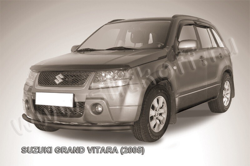 Защита переднего бампера Suzuki Grand Vitara (2005-2008) состоит из трубы, изготовленной из нержавеющей стали диаметром 57 мм. Надежное крепление к кузову автомобиля. Установка без сверления кузова. Цвет окраски: черный. Изготовление по предварительному заказу. Гарантия качества!