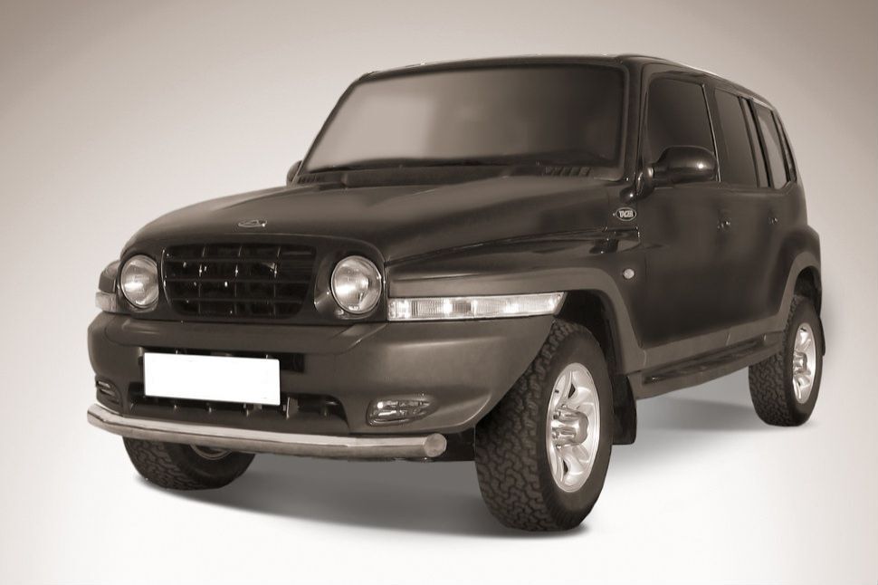 Защита переднего бампера TAGAZ Tager 5дв (2008-2012) состоит из трубы, изготовленной из нержавеющей стали диаметром 76 мм. Надежное крепление к кузову автомобиля. Установка без сверления кузова. Изготовление по предварительному заказу. Гарантия качества!