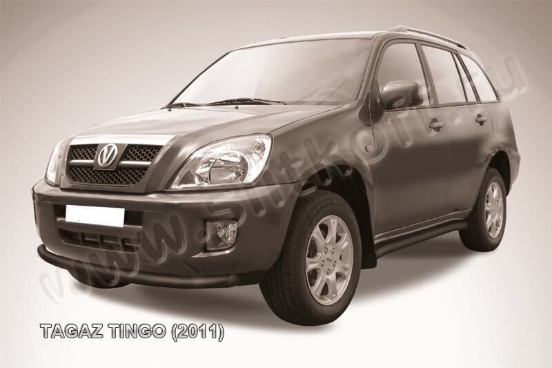 Защита переднего бампера TAGAZ Tingo (2010-2012) состоит из трубы, изготовленной из нержавеющей стали диаметром 57 мм. Надежное крепление к кузову автомобиля. Установка без сверления кузова. Цвет окраски: черный. Изготовление по предварительному заказу. Гарантия качества!