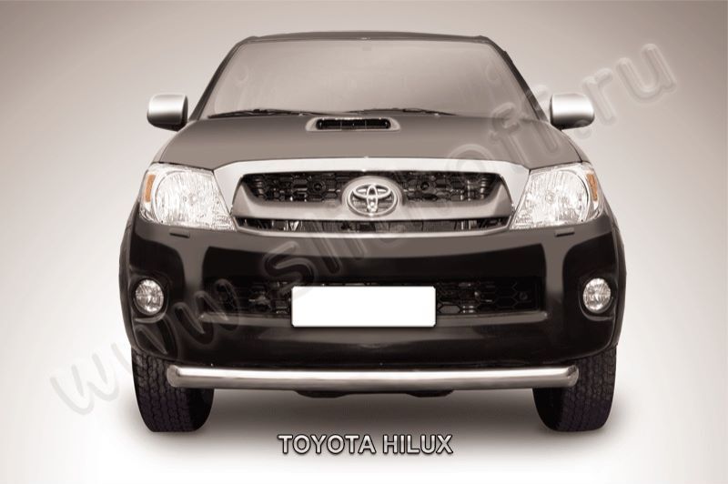 Защита переднего бампера Toyota Hilux (2011-2015) состоит из изогнутой трубы, изготовленной из нержавеющей стали диаметром 76 мм. Надежное крепление к кузову автомобиля. Установка без сверления кузова. Изготовление по предварительному заказу. Гарантия качества!