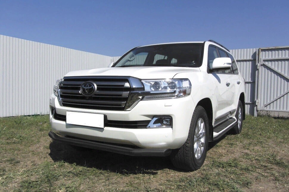 Защита переднего бампера Toyota Land Cruiser 200 (2015-2021) состоит из трубы, изготовленной из нержавеющей стали диаметром 76 мм. Надежное крепление к кузову автомобиля. Установка без сверления кузова. Цвет окраски: черный. Изготовление по предварительному заказу. Гарантия качества!