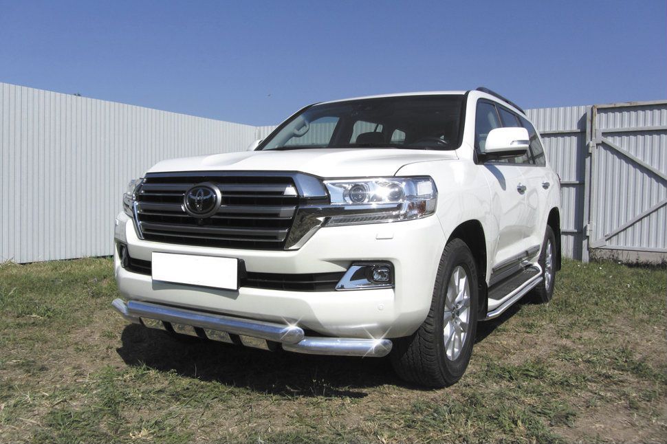 Защита переднего бампера Toyota Land Cruiser 200 (2015-2021) состоит из 2-х труб, изготовленных из нержавеющей стали диаметрами 76 и 76 мм. с профильной защитой картера. Надежное крепление к кузову автомобиля. Установка без сверления кузова. Цвет окраски: черный. Изготовление по предварительному заказу. Гарантия качества!