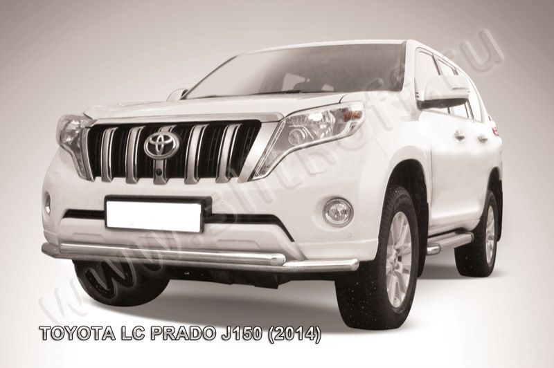 Защита переднего бампера Toyota Land Cruiser Prado J150 (2013-2017) состоит из 2-х труб, изготовленных из нержавеющей стали диаметрами 57 и 57 мм. Надежное крепление к кузову автомобиля. Установка без сверления кузова. Изготовление по предварительному заказу. Гарантия качества!