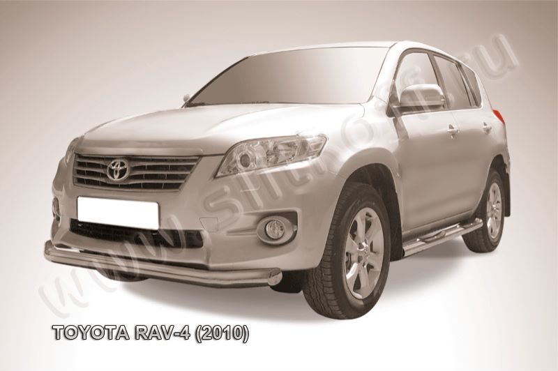 Защита переднего бампера Toyota Rav-4 (2010-2016) состоит из трубы, изготовленной из нержавеющей стали диаметром 76 мм. Надежное крепление к кузову автомобиля. Установка без сверления кузова. Изготовление по предварительному заказу. Гарантия качества!