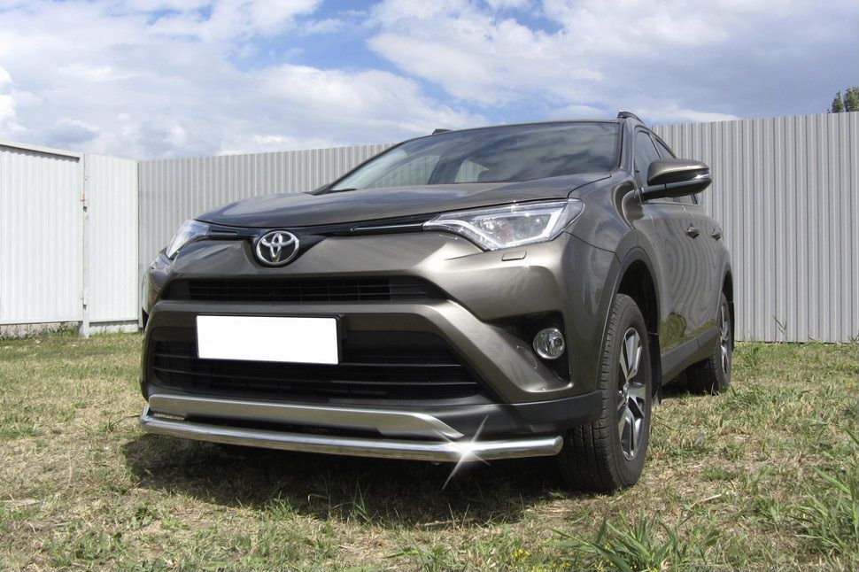 Защита переднего бампера Toyota Rav-4 (2015-2019) состоит из трубы, изготовленной из нержавеющей стали диаметром 57 мм. Надежное крепление к кузову автомобиля. Установка без сверления кузова. Изготовление по предварительному заказу. Гарантия качества!