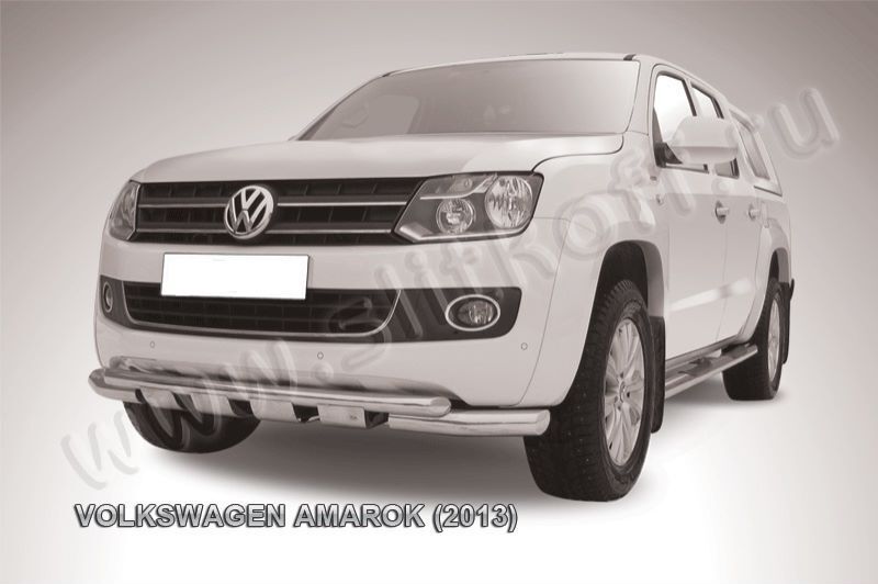 Защита переднего бампера Volkswagen Amarok (2010-2016) состоит из 2-х труб, изготовленных из нержавеющей стали диаметрами 76 и 57 мм. с профильной защитой картера. Надежное крепление к кузову автомобиля. Установка без сверления кузова. Изготовление по предварительному заказу. Гарантия качества!