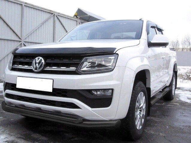Защита переднего бампера Volkswagen Amarok (2016-2023) состоит из 2-х труб, изготовленных из нержавеющей стали диаметрами 76 и 57 мм. Надежное крепление к кузову автомобиля. Установка без сверления кузова. Цвет окраски: черный. Изготовление по предварительному заказу. Гарантия качества!
