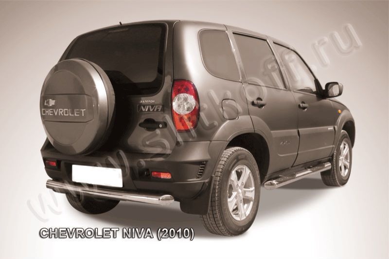 Защита заднего бампера Chevrolet Niva (2009-2020) состоит из изогнутой трубы, изготовленной из нержавеющей стали диаметром 76 мм. Надежное крепление к кузову автомобиля. Установка без сверления кузова. Изготовление по предварительному заказу. Гарантия качества!
