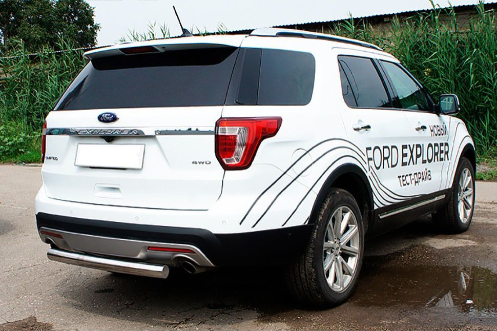 Защита заднего бампера Ford Explorer (2017-2019) состоит из трубы, изготовленной из нержавеющей стали диаметром 76 мм. Надежное крепление к кузову автомобиля. Установка без сверления кузова. Изготовление по предварительному заказу. Гарантия качества!