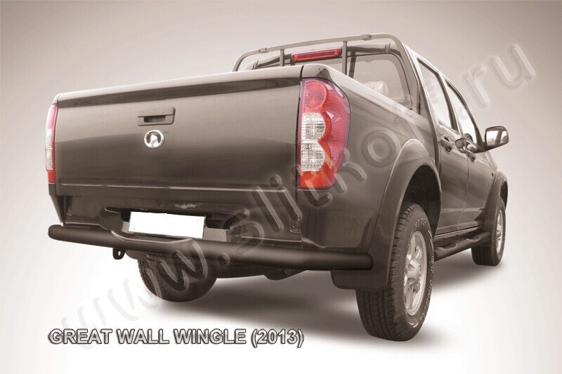 Защита заднего бампера Great Wall Wingle (2011-2015) состоит из трубы, изготовленной из нержавеющей стали диаметром 76 мм. На трубе имеется противоскользящая пластиковая накладка. Надежное крепление к кузову автомобиля. Установка без сверления кузова. Цвет окраски: черный. Изготовление по предварительному заказу. Гарантия качества!