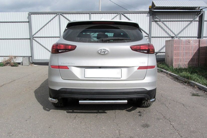Защита заднего бампера Hyundai Tucson Turbo (2018-2021) состоит из трубы, изготовленной из нержавеющей стали диаметром 57 мм. Надежное крепление к кузову автомобиля. Установка без сверления кузова. Изготовление по предварительному заказу. Гарантия качества!